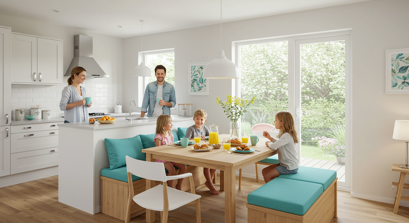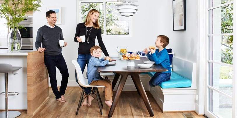 Erich and Amanda Cabe with sons Brooks (left) and Maxwell in their renovated kitchen. Photo by Stacy Zarin Goldberg