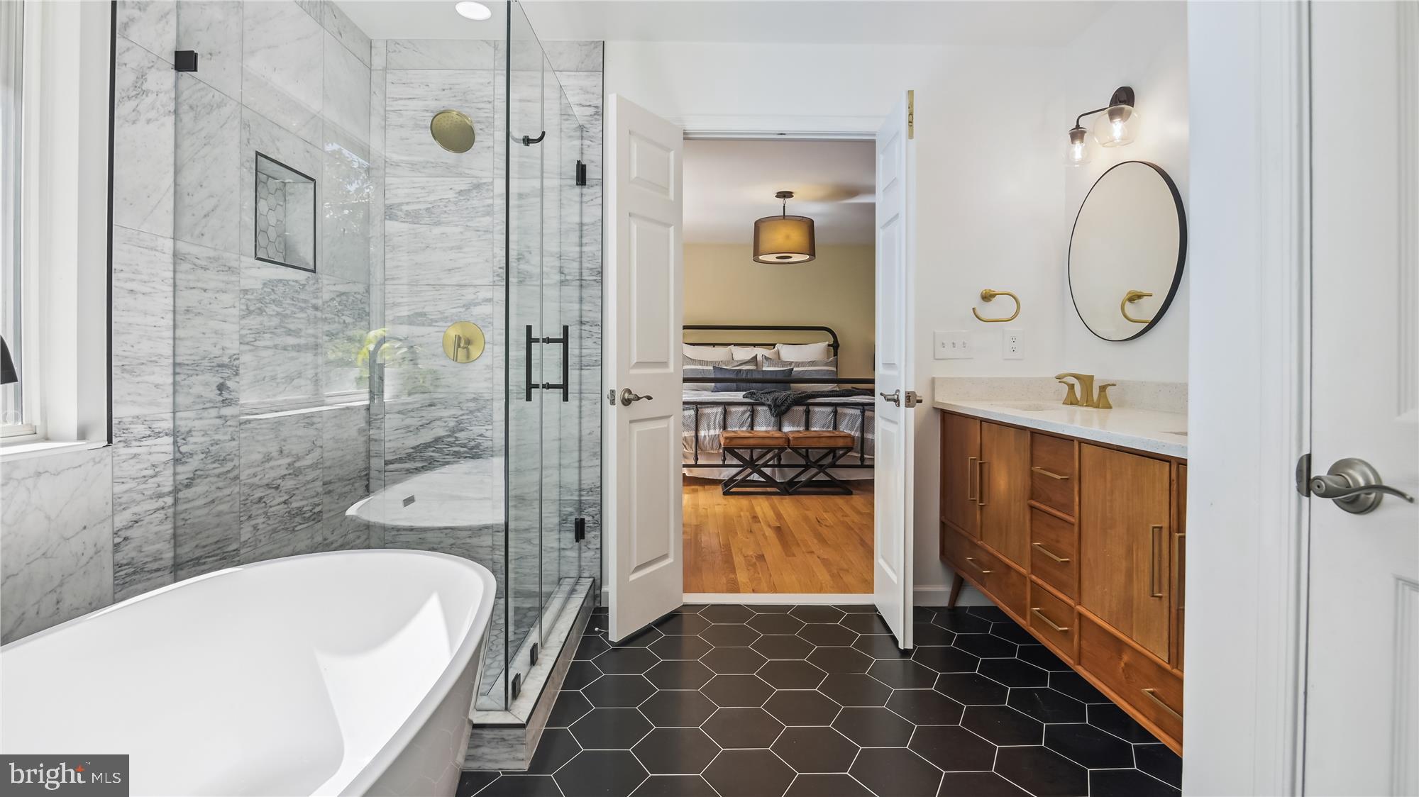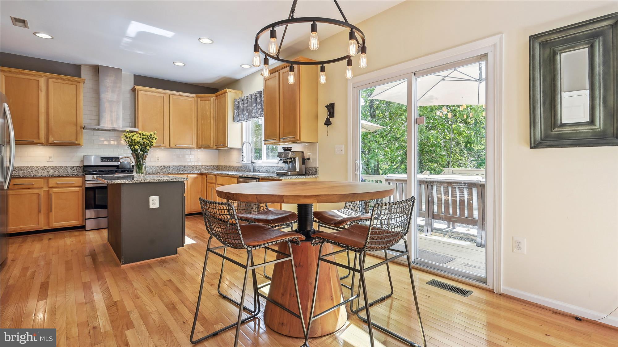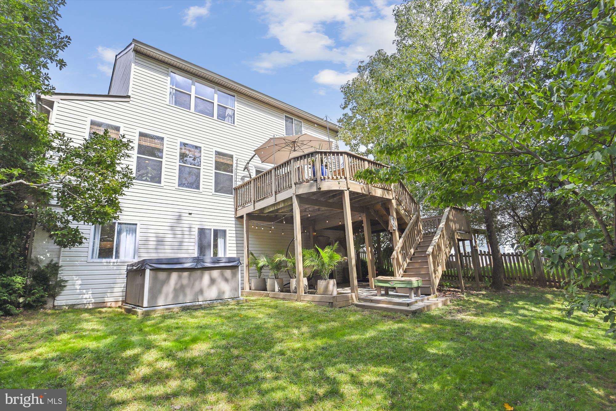 Amazing! This sophisticated 5BR/3.5 BA home is updated from top to bottom, move-in ready, and shows like a model! Entering through the two-story foyer, you'll find modern stylish light-fixtures, recessed lighting, and hardwood floors throughout the first and second floors. Enjoy the views from the sun-filled upgraded kitchen with delightful custom touches along with the breakfast area and large pantry. The spacious family room with gas fireplace also features views of the tree lined, park-like setting where you'll find a large two-tiered deck with stairs leading down to a stone patio and fully fenced backyard. Secluded main-level office located near the main level modern powder room. An open split-staircase leads you to the second floor where you'll find a large primary bedroom featuring fantastic views and a large walk-in closet with a superbly custom renovated in-suite five-piece bath including a walk-in glass enclosed shower and separate deep soaking tub providing for complete relaxation. Three more upper-level bedrooms are generously sized and the additional bathroom is tastefully renovated. The walk-out lower level of the home is abundant with natural sunlight, state-of-the-art Wine Cellar for the wine collector, plus a 5th bedroom, full modern bath with walk-in shower, spacious comfortable recreation/entertaining area, laundry room, and storage! So many upgrades - we must add to the list: recent roof replacement, HVAC, plus Tesla/EV charger in the two-car garage with room for extra storage/bikes.