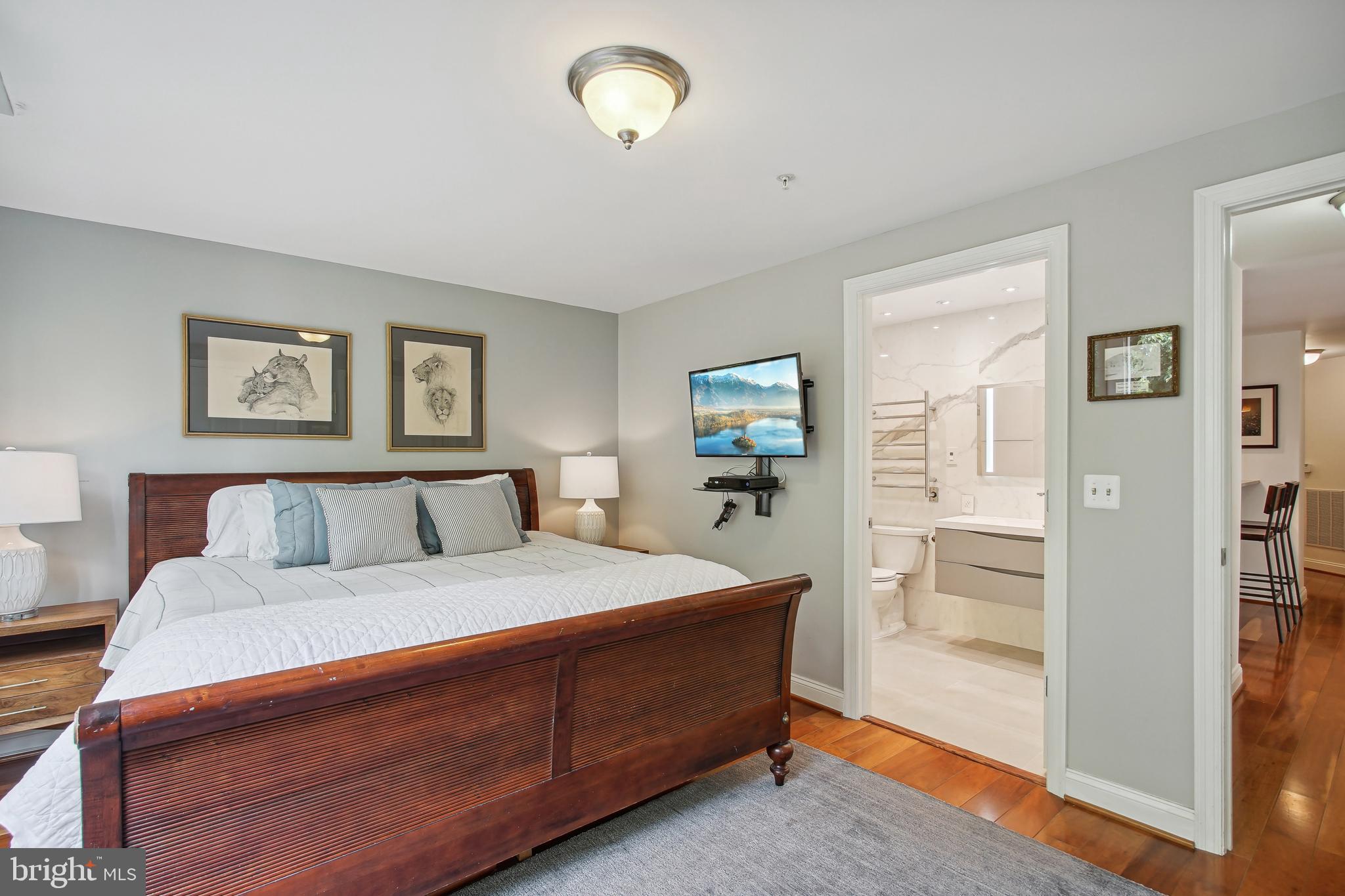 JUST LISTED! Introducing a remarkable west facing unit at Georgetown Heights with fabulous natural sunlight in all rooms. This 2 Bedroom, 2.5 Bath unit features an open floor plan with hardwood floors, gas fireplace, Gourmet Kitchen with a Viking Professional series appliance package and MORE!. The spa-inspired primary bathroom has undergone a fabulous renovation and includes marble finishes, soaking tub/shower, radiant flooring and custom floating vanities. In addition - California Closets provide exceptional storage in both bedrooms PLUS a side by side washer/dryer, Two garage parking spaces and extra storage convey. 2501 Wisconsin Avenue offers front desk concierge services, spectacular rooftop terrace with sweeping DC views, seating, and gas grilles for barbecuing. The ideal location has immediate access to Glover Park and Georgetown with all their restaurants and shops including Whole Foods and Trader Joes. Welcome Home!