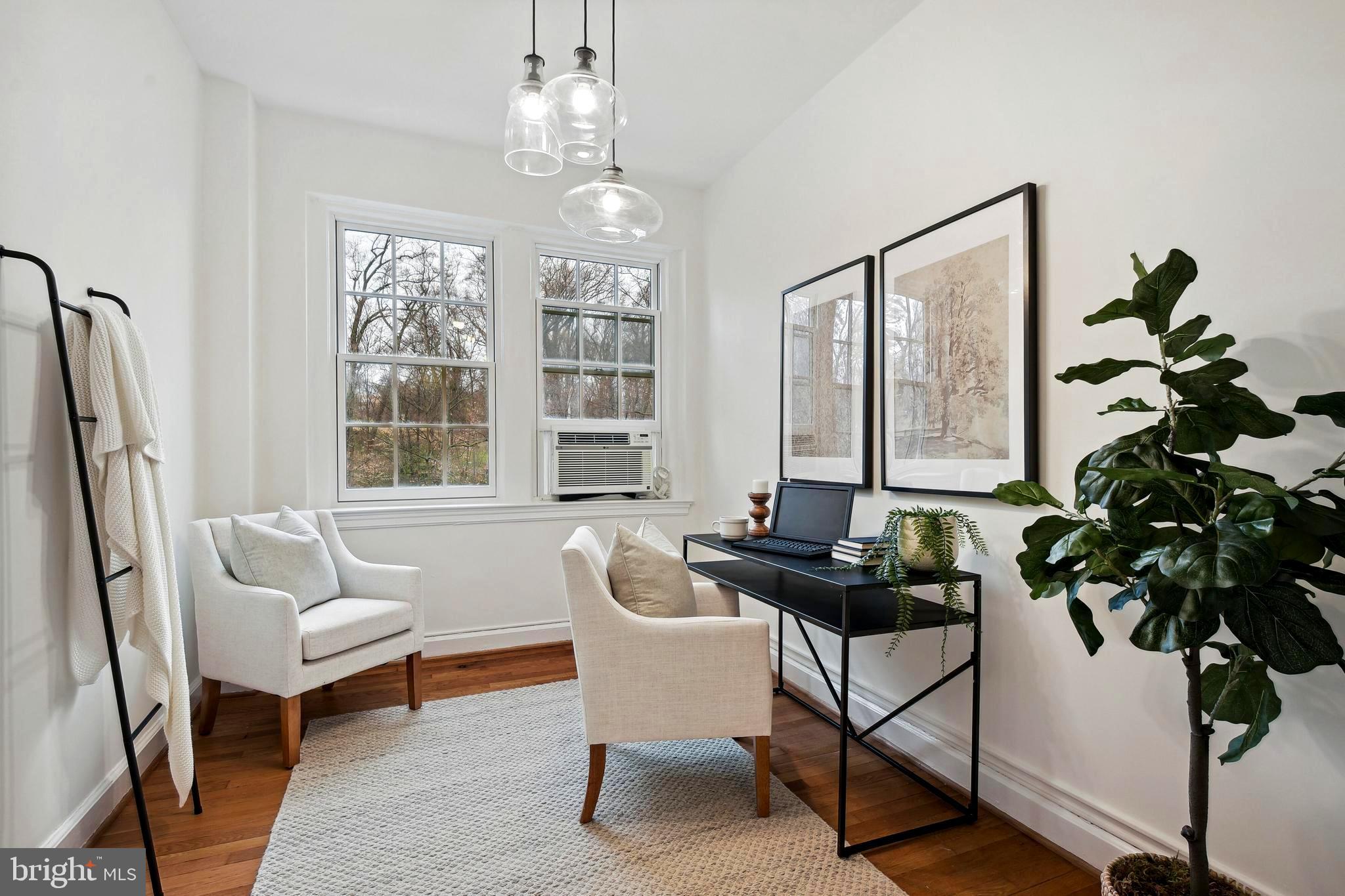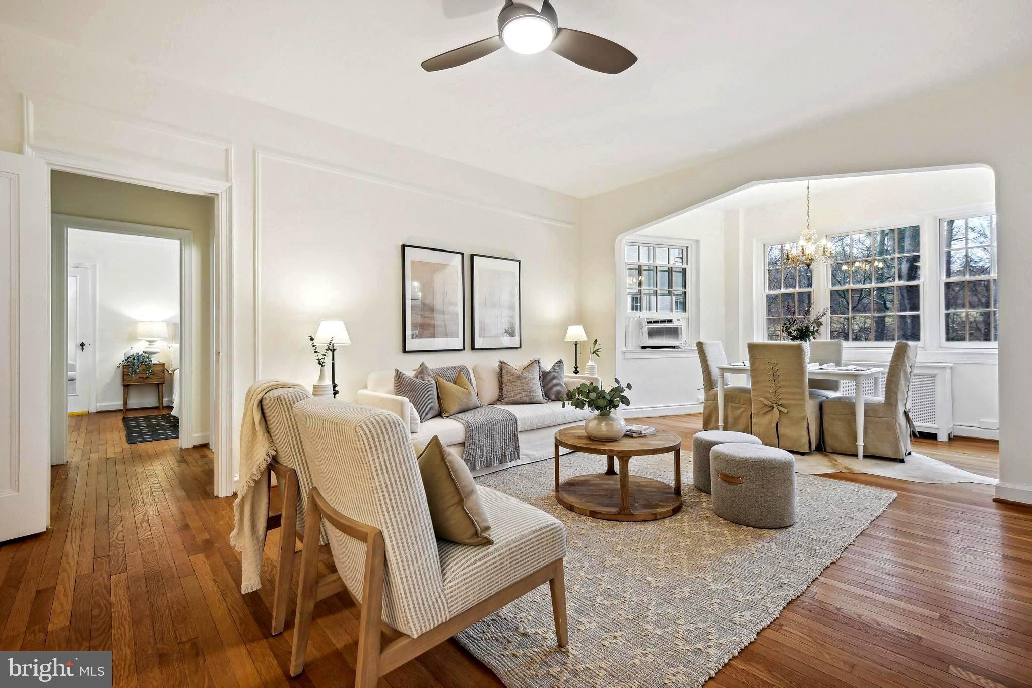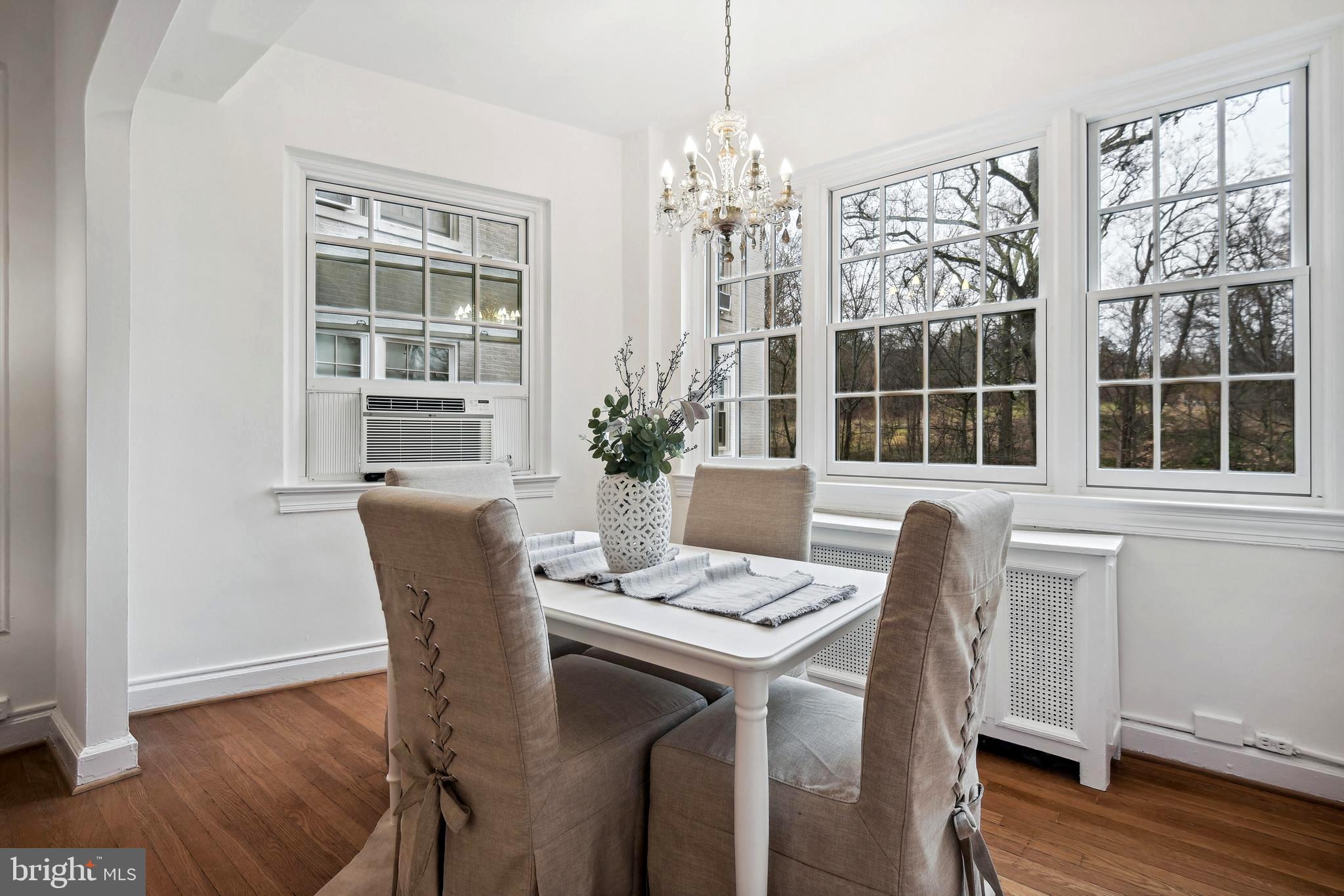 Open House Cancelled. Welcome to the iconic Woodley Park Towers, known as one of DC's most quintessential Art Deco buildings filled with history and astonishing architectural details. Proudly presented in 'Best Addresses' by James Goode, Woodley Park Towers was designed by architect Louis T. Rouleau, SR who graciously embellished the building's facade with Art Deco geometric detailing. This beautifully renovated 1BR 1BA + den unit is located on the 2nd floor (not ground level) and offers one of the larger layouts spanning 902 square feet plus a flexible floor plan with a desirable and tranquil view facing the park. This stunning home has been renovated therefore the new homeowner can move right in and start enjoying life at Woodley Park Towers. Home features, 9 new Pella energy efficient double-pane windows that stream in natural light, renovated gourmet kitchen complete with new white shaker cabinets, stainless appliances, gas range, under mount sink, new tile floor and granite countertops, the spacious living room can easily accommodate several friends for cocktails, conversations and social gatherings, the bright sunroom (currently used for dining) is adorned with four large windows showcasing park views, the den adjacent to the kitchen is another flex space that can be used as a home office, art studio or guest space, the generous size primary bedroom offers a quiet retreat plus a walk-in closet and don't forget the newly renovated spa-like bathroom with a glass enclosed walk-in shower, new fixtures/lighting, new vanity, commode and tile floor. Wait there's more! Additional features include, new paint throughout, tall ceilings, warm hardwood floors, classic doorway arches, solid wood doors, wall molding, plenty of closet space in this apartment with 4 in total, ceiling fans and an upgraded electrical panel. Woodley Park Towers is a well-managed luxury condo building that's ideally located on a tree-lined street between Woodley Park and Cleveland Park. This full service, pet-friendly building provides these wonderful amenities for its residents, 24-hour concierge with security, a grand lobby, part-time lobby attendant, front fountain with seating, on-site management, fitness center, sauna, on-site laundry, library, party room, designated storage room, bike room, rental parking (wait list), spacious outdoor terrace with a grilling station and a herb garden. For outdoor and nature lovers, Woodley Park Towers is situated close to Klingle Valley Trail, Tregaron Conservancy, Rock Creek Park and the National Zoo. These outdoor retreats are added bonuses to urban living. A short distance to either Woodley Park or Cleveland Park to enjoy shopping, coffee, several restaurants, bars, Street's Market, library, Target, farmer's market and much more. Both neighborhoods offer a close metro (red line) for easy city traveling and access to downtown. Just blocks away you'll find Giant, Whole Foods and Wegmans. Walk-score 89. Checkout the 3D tour!