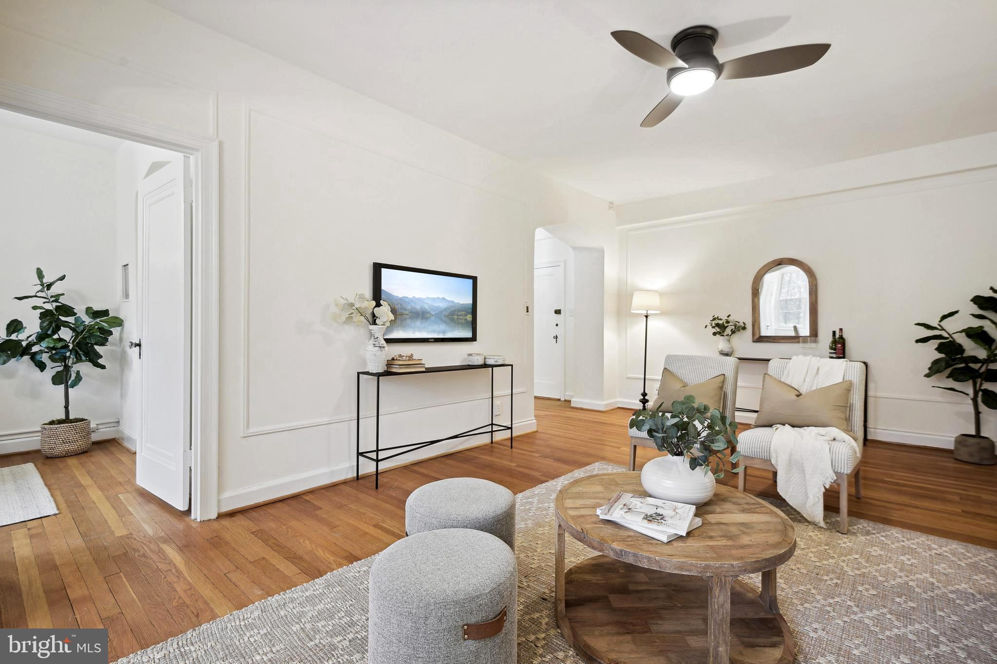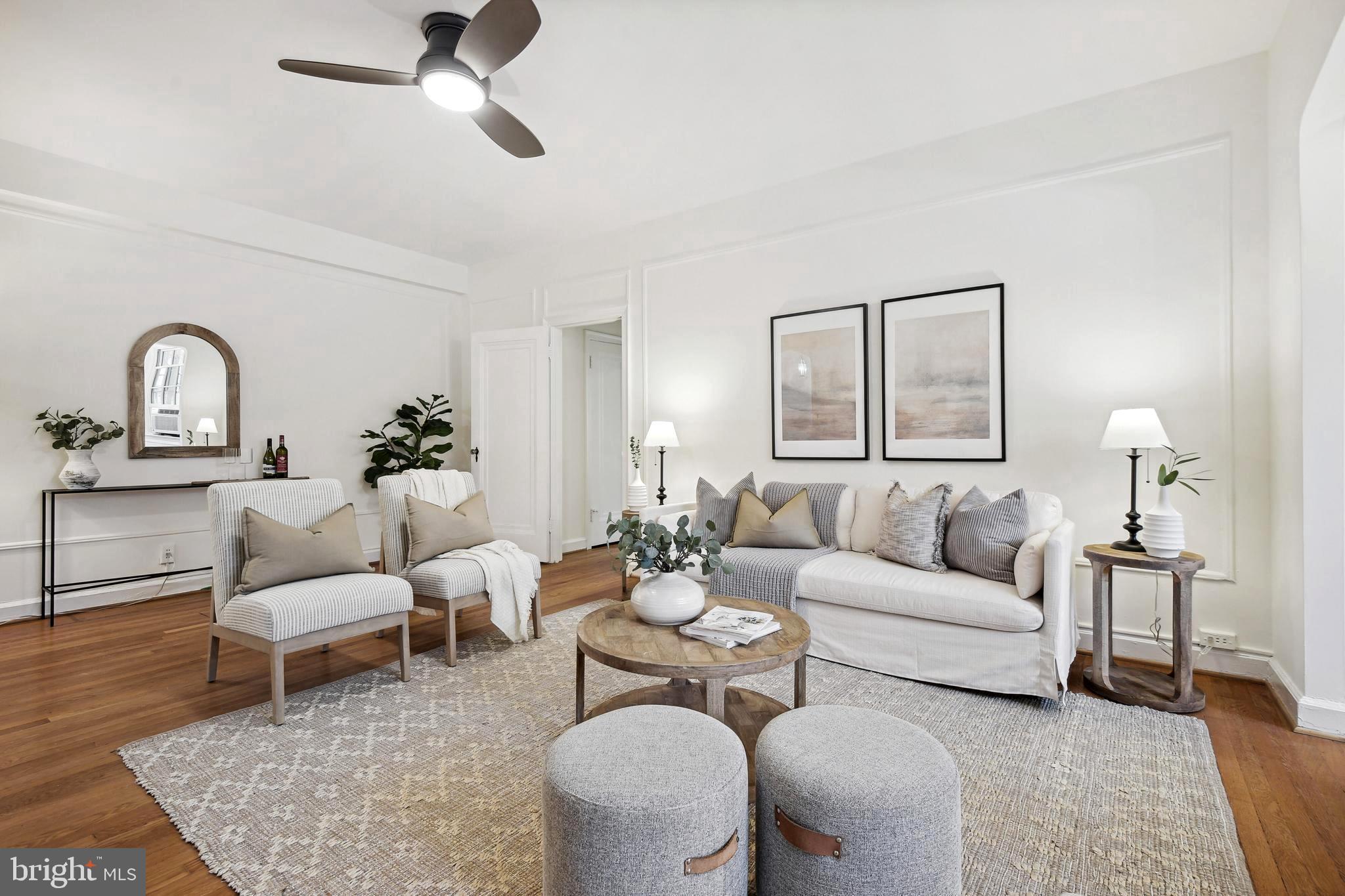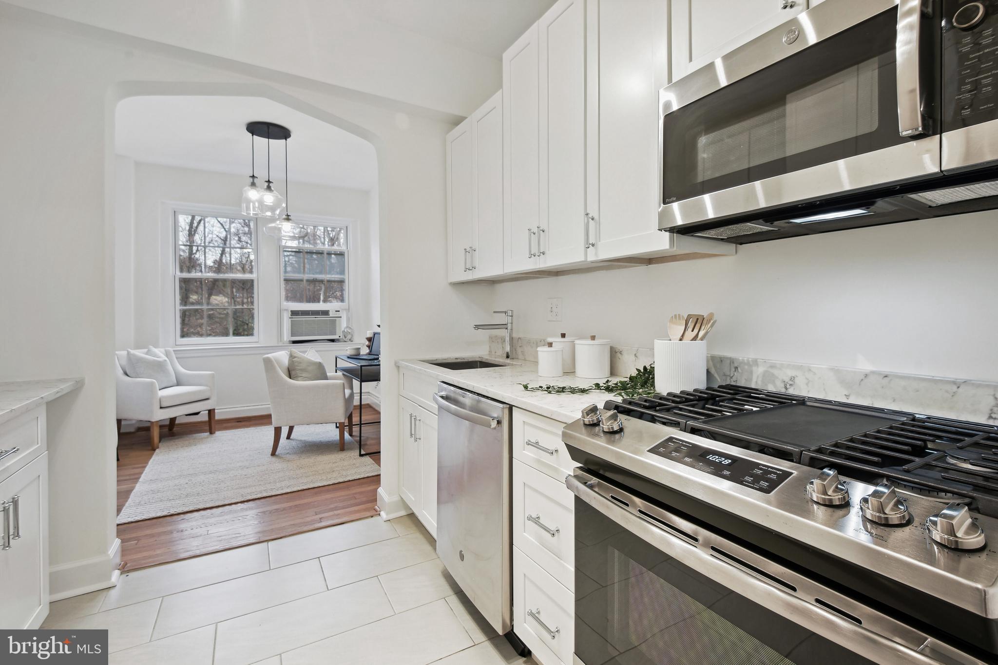 Open House Cancelled. Welcome to the iconic Woodley Park Towers, known as one of DC's most quintessential Art Deco buildings filled with history and astonishing architectural details. Proudly presented in 'Best Addresses' by James Goode, Woodley Park Towers was designed by architect Louis T. Rouleau, SR who graciously embellished the building's facade with Art Deco geometric detailing. This beautifully renovated 1BR 1BA + den unit is located on the 2nd floor (not ground level) and offers one of the larger layouts spanning 902 square feet plus a flexible floor plan with a desirable and tranquil view facing the park. This stunning home has been renovated therefore the new homeowner can move right in and start enjoying life at Woodley Park Towers. Home features, 9 new Pella energy efficient double-pane windows that stream in natural light, renovated gourmet kitchen complete with new white shaker cabinets, stainless appliances, gas range, under mount sink, new tile floor and granite countertops, the spacious living room can easily accommodate several friends for cocktails, conversations and social gatherings, the bright sunroom (currently used for dining) is adorned with four large windows showcasing park views, the den adjacent to the kitchen is another flex space that can be used as a home office, art studio or guest space, the generous size primary bedroom offers a quiet retreat plus a walk-in closet and don't forget the newly renovated spa-like bathroom with a glass enclosed walk-in shower, new fixtures/lighting, new vanity, commode and tile floor. Wait there's more! Additional features include, new paint throughout, tall ceilings, warm hardwood floors, classic doorway arches, solid wood doors, wall molding, plenty of closet space in this apartment with 4 in total, ceiling fans and an upgraded electrical panel. Woodley Park Towers is a well-managed luxury condo building that's ideally located on a tree-lined street between Woodley Park and Cleveland Park. This full service, pet-friendly building provides these wonderful amenities for its residents, 24-hour concierge with security, a grand lobby, part-time lobby attendant, front fountain with seating, on-site management, fitness center, sauna, on-site laundry, library, party room, designated storage room, bike room, rental parking (wait list), spacious outdoor terrace with a grilling station and a herb garden. For outdoor and nature lovers, Woodley Park Towers is situated close to Klingle Valley Trail, Tregaron Conservancy, Rock Creek Park and the National Zoo. These outdoor retreats are added bonuses to urban living. A short distance to either Woodley Park or Cleveland Park to enjoy shopping, coffee, several restaurants, bars, Street's Market, library, Target, farmer's market and much more. Both neighborhoods offer a close metro (red line) for easy city traveling and access to downtown. Just blocks away you'll find Giant, Whole Foods and Wegmans. Walk-score 89. Checkout the 3D tour!