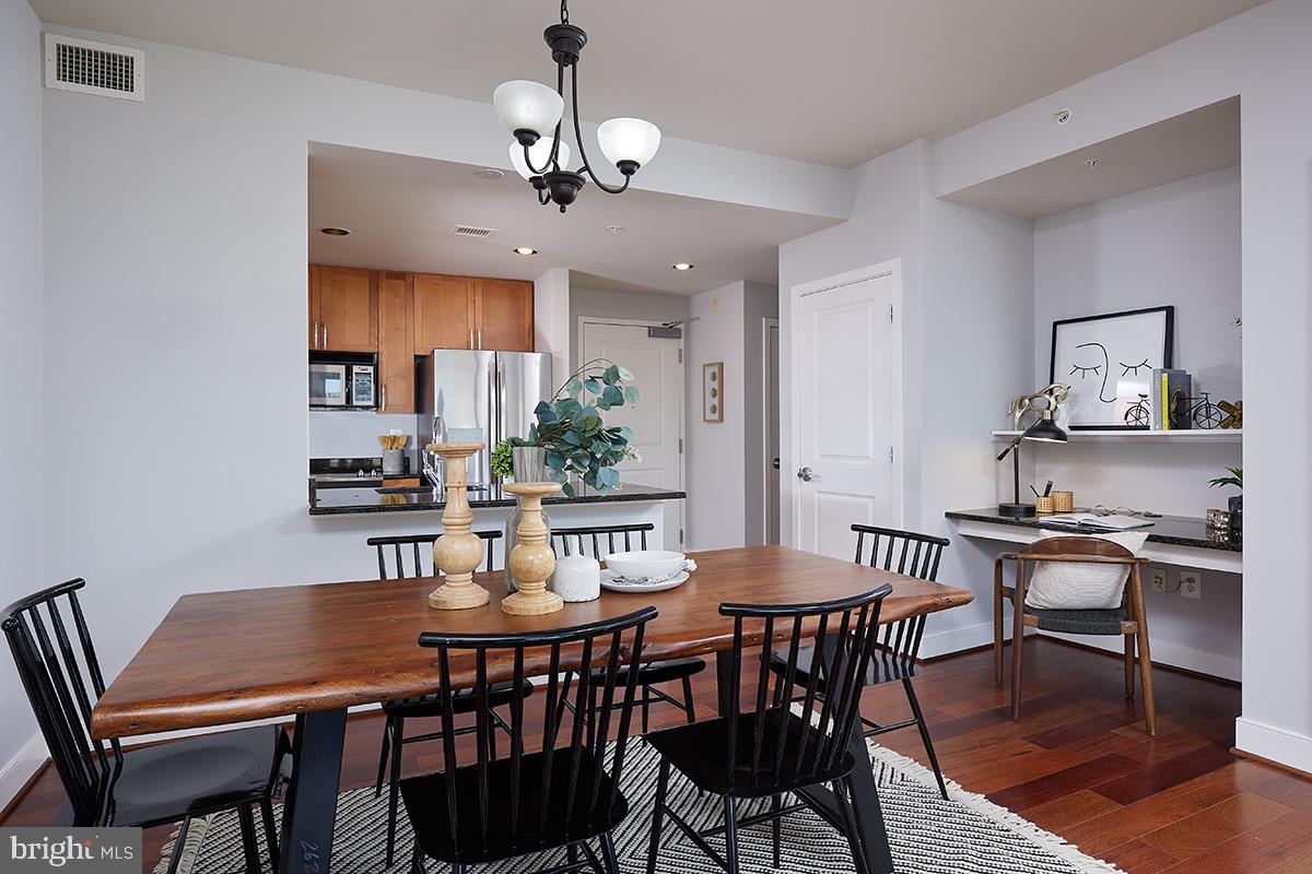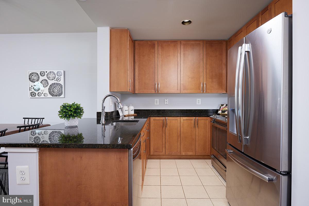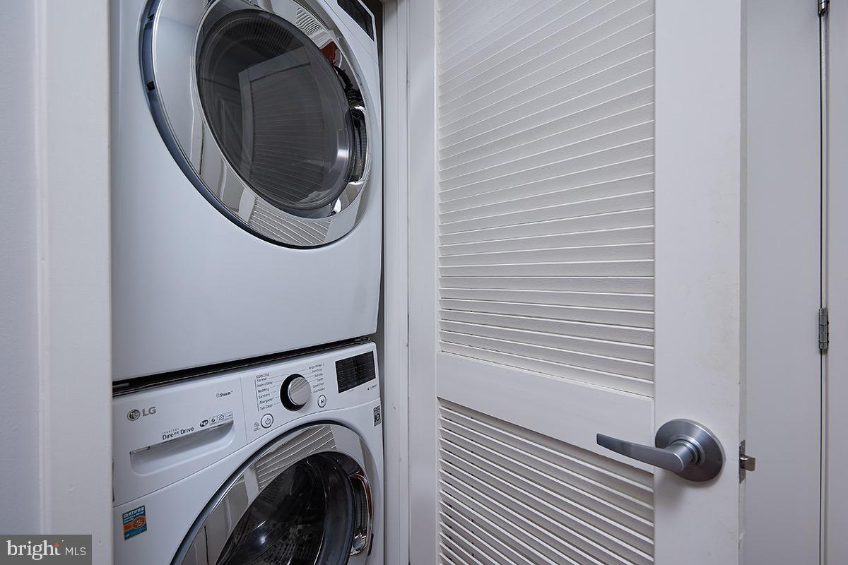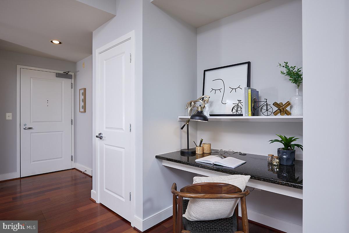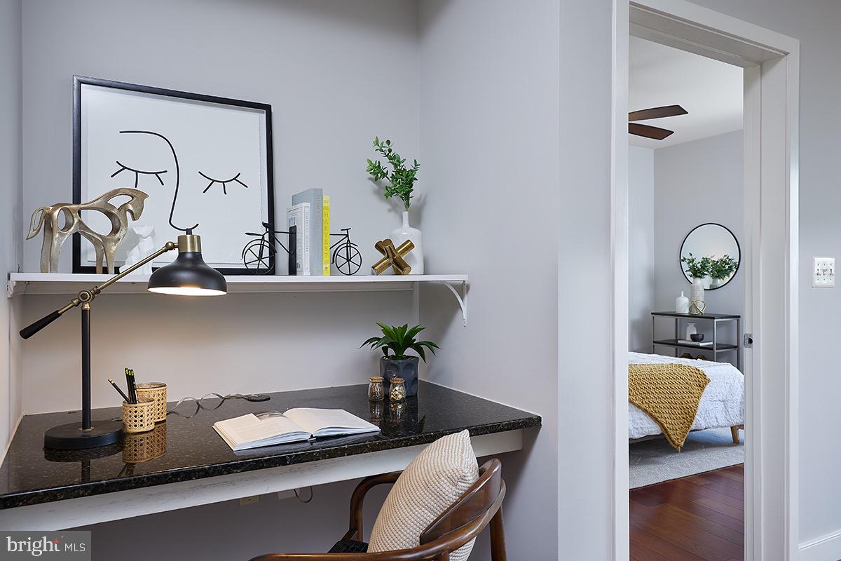 As you enter the unit you'll be impressed by the rich wood floors and incredible light from the large windows. The living and dining areas provide abundant space and even feature a small office cutout compete with a built in granite topped desk. The updated kitchen also features gleaming granite counters, as well as a new stainless range (2023) and recently updated stainless refrigerator (2019). The wood floors continue into your oversized bedroom retreat which is complemented by a walk-in closet as well as access to the full bath. The beautifully updated bath area also benefits from "jack and jill" entrances providing tremendous flow! Other highlights of this extremely well cared for unit include a large pantry/closet, an updated heat pump (2021), updated paint throughout the unit (2023), a recently updated in unit washer/dryer (2019), and a secure garage parking space (#69). Truly this unit is in impeccable condition and offers everything you are looking for and more!