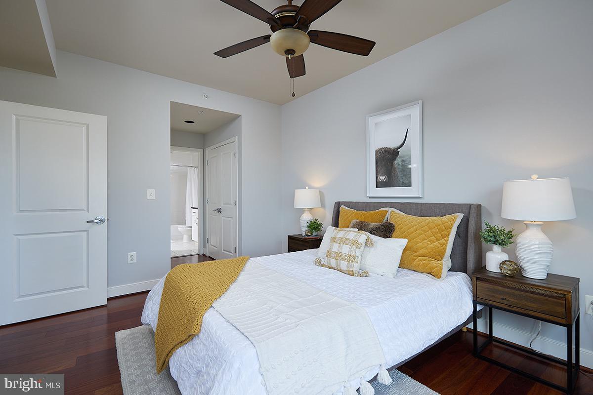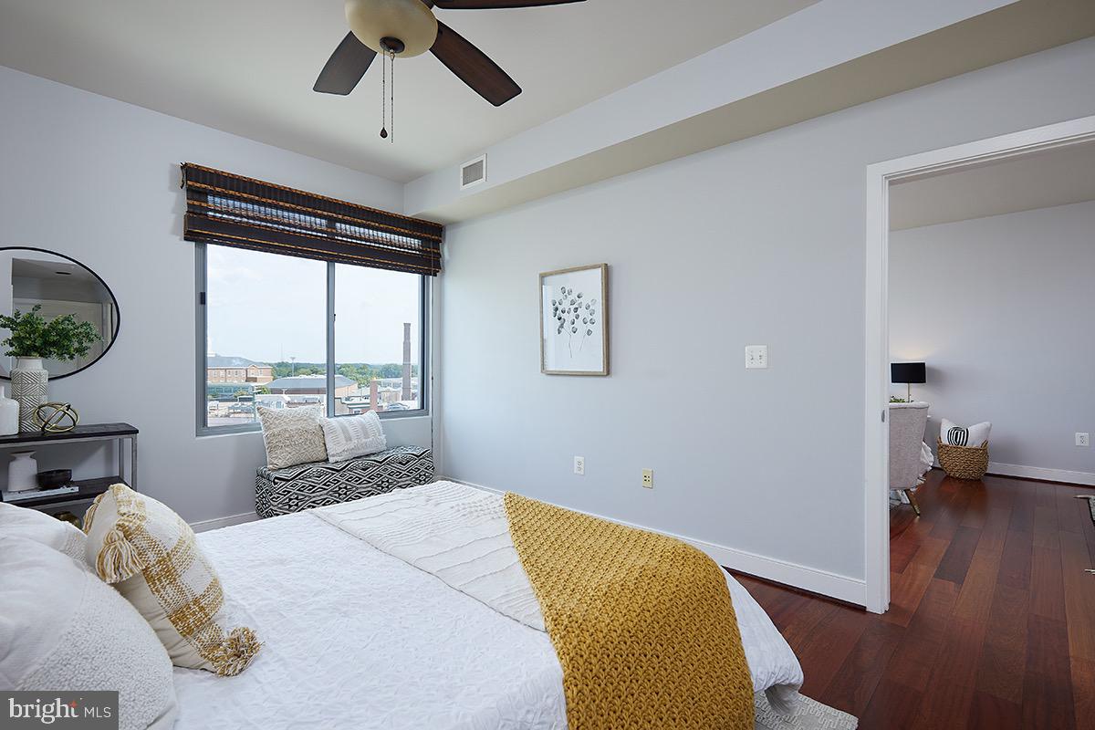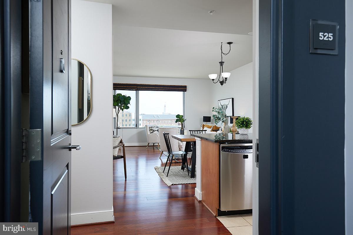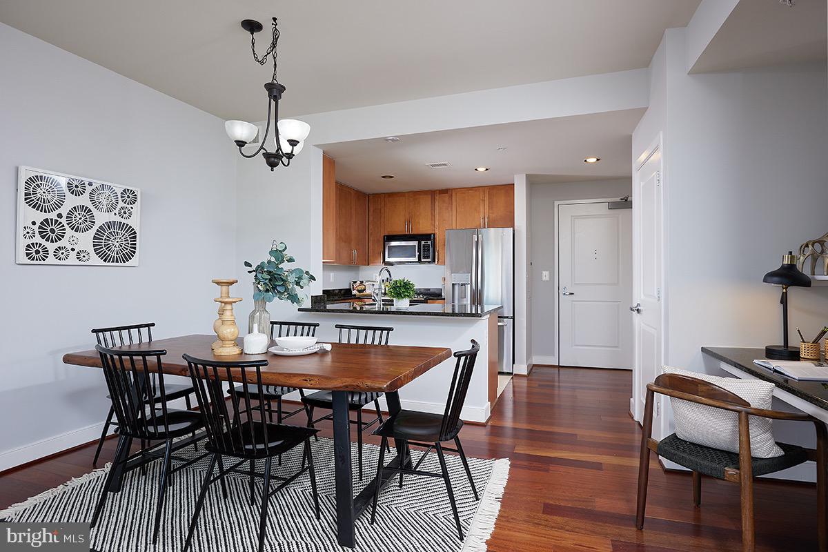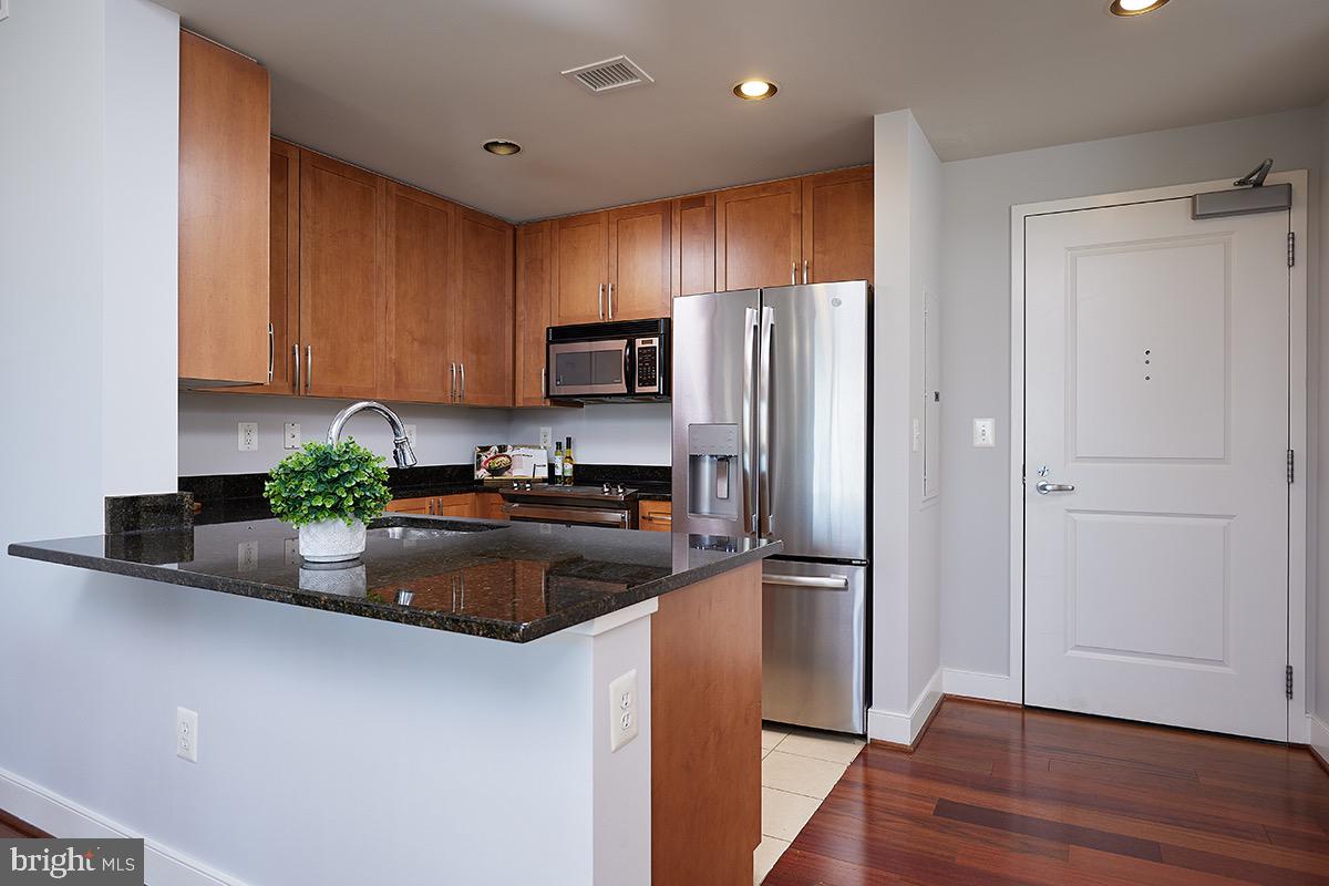 As you enter the unit you'll be impressed by the rich wood floors and incredible light from the large windows. The living and dining areas provide abundant space and even feature a small office cutout compete with a built in granite topped desk. The updated kitchen also features gleaming granite counters, as well as a new stainless range (2023) and recently updated stainless refrigerator (2019). The wood floors continue into your oversized bedroom retreat which is complemented by a walk-in closet as well as access to the full bath. The beautifully updated bath area also benefits from "jack and jill" entrances providing tremendous flow! Other highlights of this extremely well cared for unit include a large pantry/closet, an updated heat pump (2021), updated paint throughout the unit (2023), a recently updated in unit washer/dryer (2019), and a secure garage parking space (#69). Truly this unit is in impeccable condition and offers everything you are looking for and more!