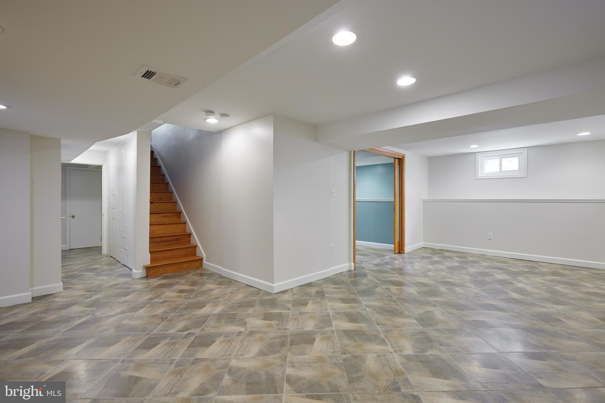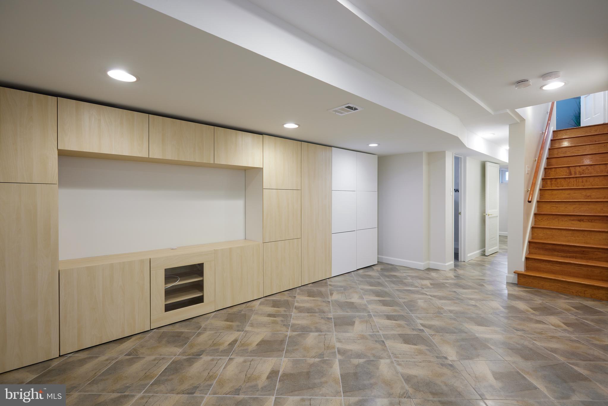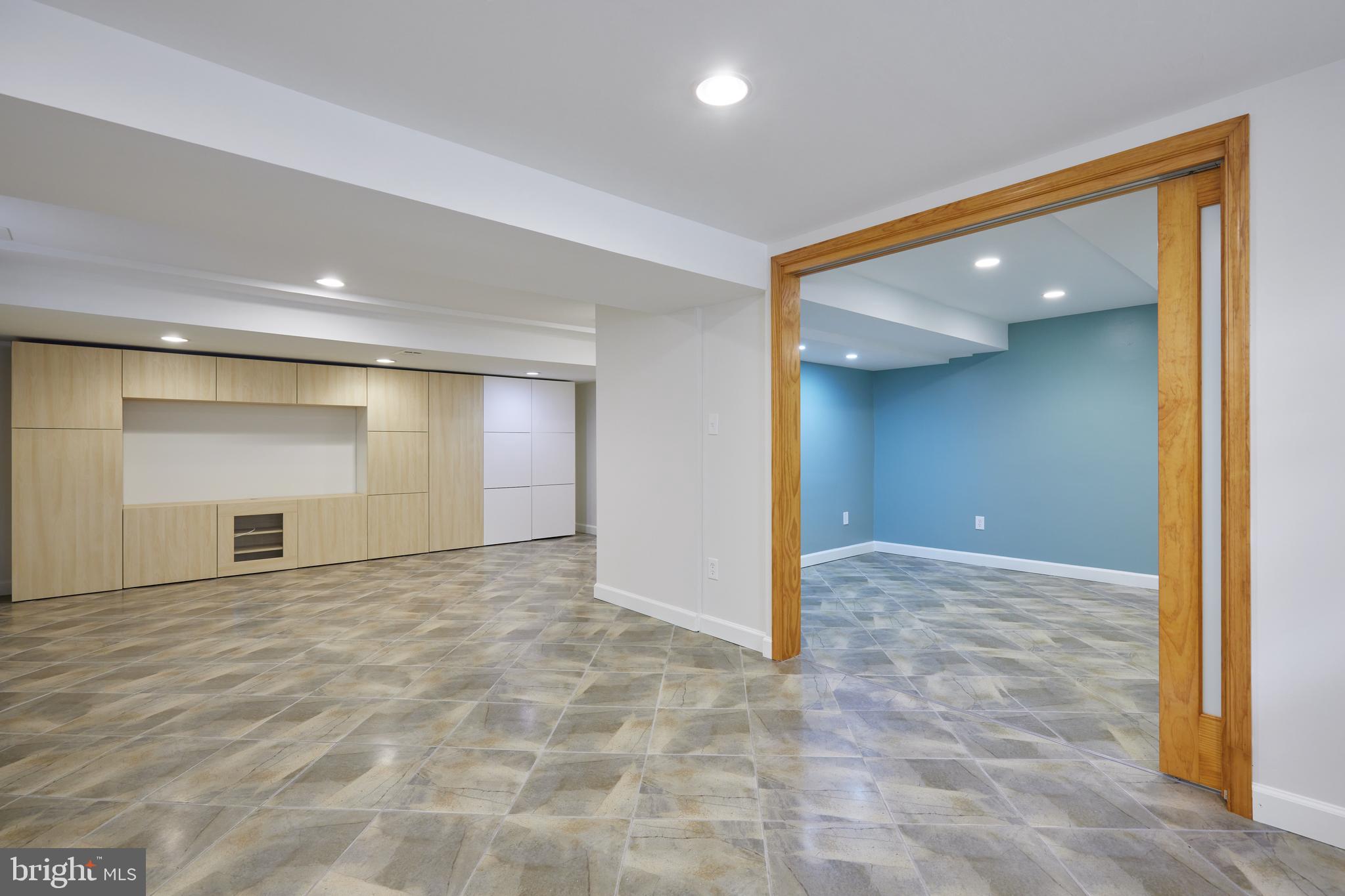 Upstairs, you'll find two generously sized bedrooms, each with walk-in closets, a full hall bath, and extra storage space. The fully finished lower level includes a large recreation room--perfect for a home theater or playroom--a separate area for a home gym, a flexible bonus room with a pocket door, a full bathroom, laundry room, and a spacious workshop/utility area. Built-in cabinetry throughout the home provides abundant storage.