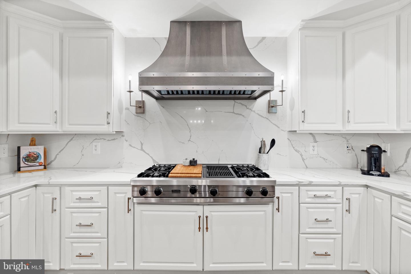 The main level, boasting soaring ceilings, is thoughtfully designed to facilitate both large-scale entertaining and intimate daily life. The open floor plan ensures seamless flow between formal and informal spaces, punctuated by designer fixtures from Restoration Hardware. At the core of the main level, the kitchen--equipped with Viking appliances, Venezia Quartz and Calacatta Vagli countertops, and premium Schaub and Company hardware--stands as a testament to luxurious yet functional design. A secluded bedroom suite enhances the home's multigenerational adaptability, while a mudroom provides direct access to a three-car garage.