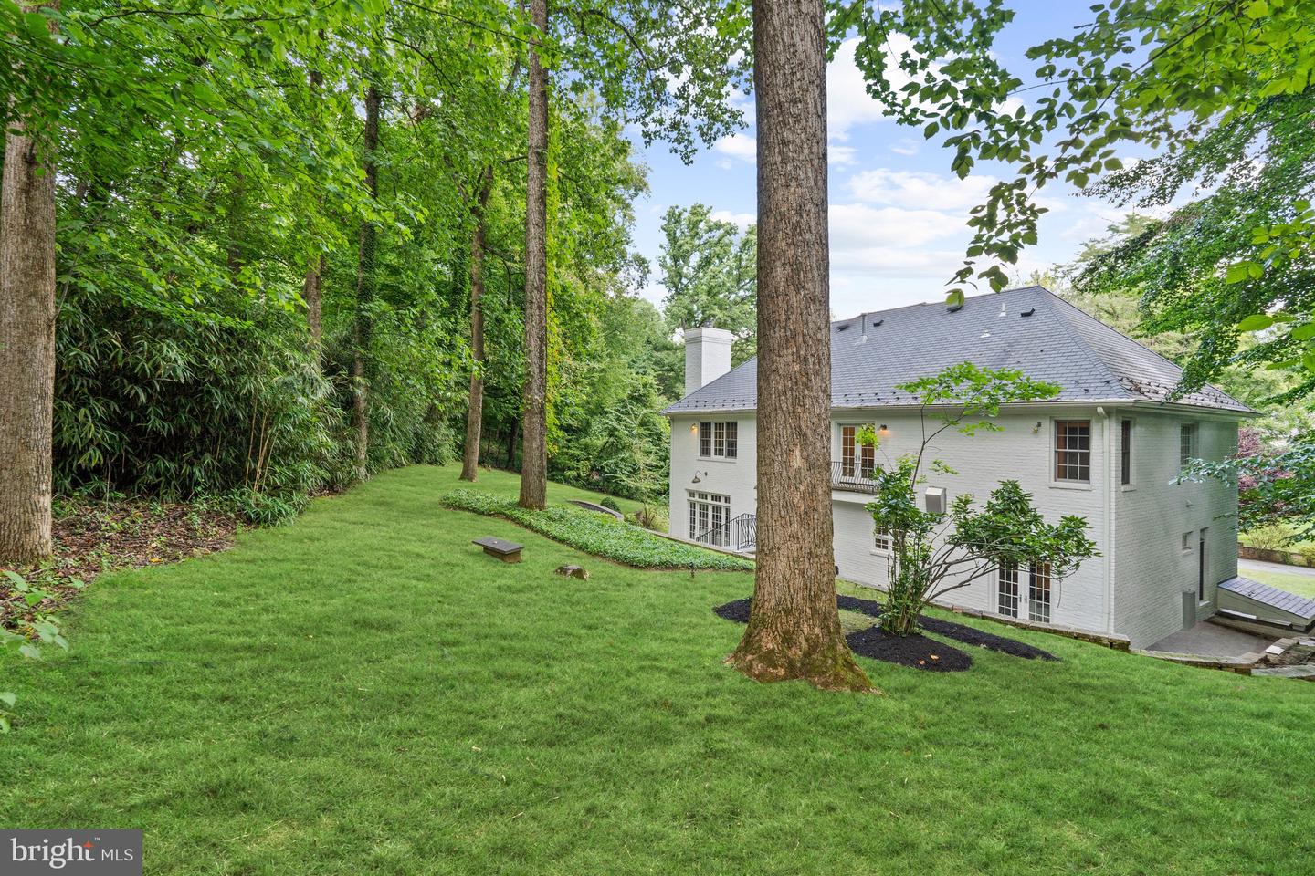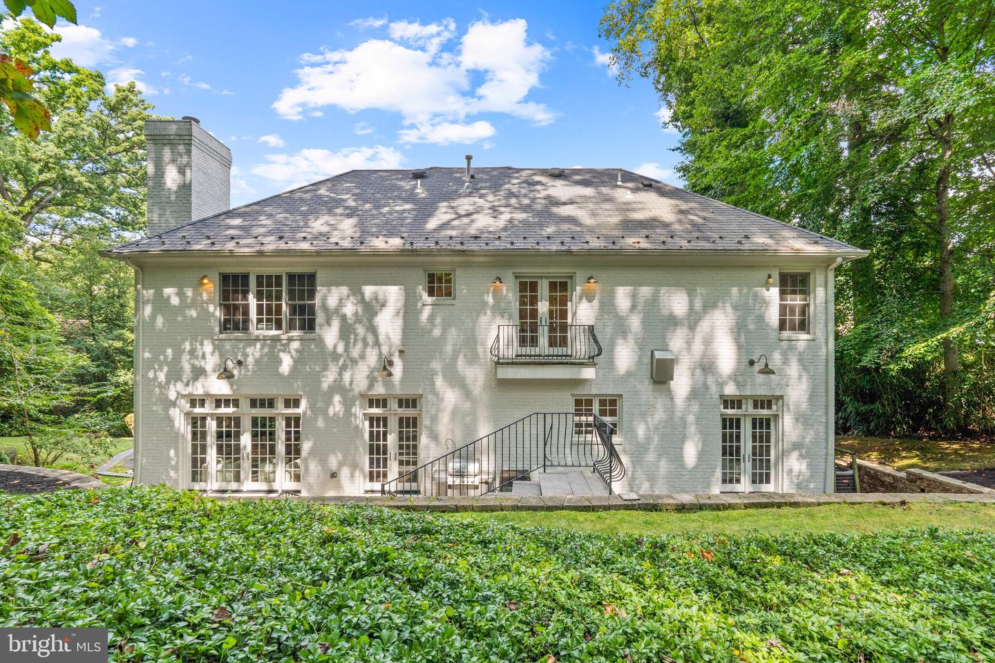 Incredible Value! Introducing 7500 Nevis Road--a custom-built, newly-updated colonial masterpiece, ideally situated in the heart of Bethesda's Bannockburn Estates. This home epitomizes the best in single-family living, offering a harmonious blend of expansive square footage, lavish craftsmanship, ultimate privacy, and a prime location. Set against a lush, wooded backdrop, the freshly painted white-brick and gray-shingle facade complements the natural surroundings. A flagstone pathway, winding through manicured lawns, leads to a covered entrance that opens to a breathtaking double-height foyer, anchored by an elegant grand staircase.