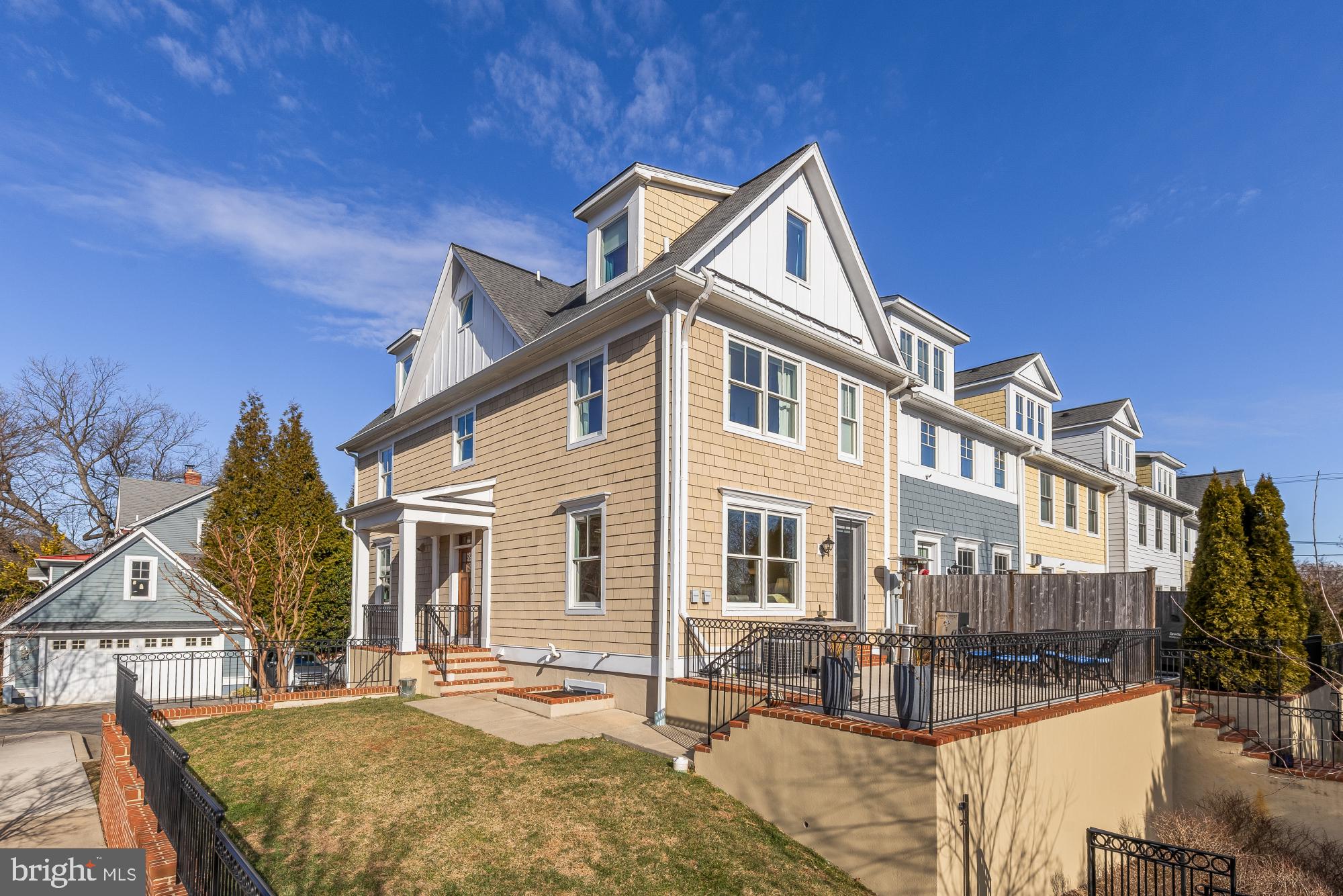 Welcome to this gorgeous, end-unit townhome in the sought after Woodside neighborhood of Silver Spring. You enter into a lovely main level living area that feels both expansive and intimate. The living room is large and bright, with gleaming hardwood floors, high ceilings, and big windows bathing the whole place in light. The living room is open and connected to a lovely dining area and a wonderful, well-designed, gourmet kitchen, featuring granite countertops, stainless steel appliances, under cabinet lighting, and counter seating. There is an attractive powder room and a good-sized home office (also bathed in sunlight) on this main level. Upstairs, you will find two bedrooms that both have ensuite bathrooms. The primary bedroom has a walk-in closet and the primary bath has a double vanity, a shower, and a soaking tub. Also on this second floor is full-sized laundry and several closets for storage. On the top level, there is a cute, charming bedroom, another full bathroom, and a great flexible space that could be an office or a playroom. The lower level of the house has a large fourth bedroom, perfect for guests or a workout space, plus the fourth full bathroom, and direct access to the two-car garage. The large, private deck area off the back of the house and the fenced-in side yard make this a very special townhome. You will love living in this beautiful, peaceful, tree-filled neighborhood, just steps away from all that Downtown Silver Spring has to offer!
